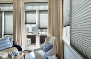 Cellular shades, solar screens, and shutters help reduce heat buildup from strong afternoon sunlight.