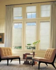 Standard blinds don’t block UV heat completely. Solar shades or cellular window coverings help keep rooms cooler by reflecting sunlight and trapping less heat.